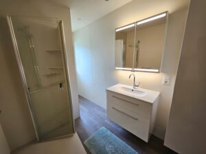 Das Wohnhaus verfügt im Hochparterre über einen Gang/Diele, ein Wohn- Esszimmer, eine Wohnküche, ein Elternschlafzimmer, ein Kinderzimmer, ein saniertes Badezimmer (begehbare Dusche und Badezimmerverbau inkl.) und ein WC (Waschbecken inkl.).