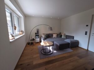 Als Bodenbeläge wurden ein hochwertiger Eichenparkett und Fliesenböden verlegt.